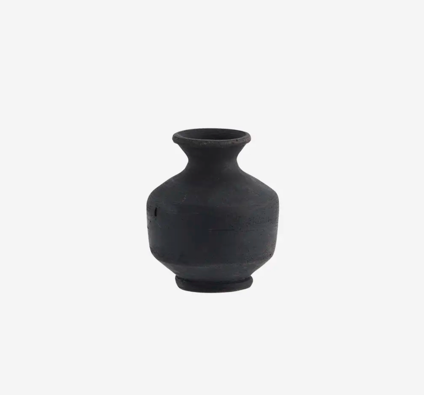 Shape is uneven and surface imperfect with traces from the human hands that touched it and the flames that fired it.