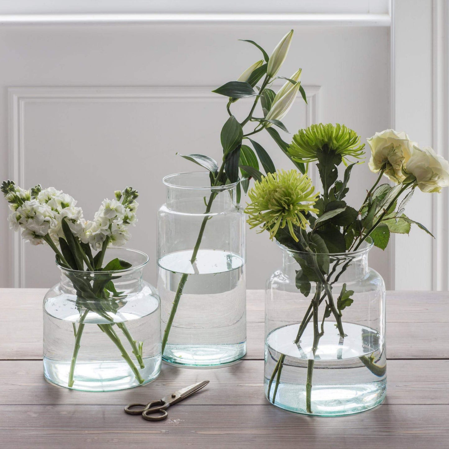 Crafted from 100% Recycled Glass the Broadway Vase is light in style with a wide base and neck. This allows the user to show off their arrangements in their entirety, creating a lovely sense of balance that works beautifully with slender blooms.