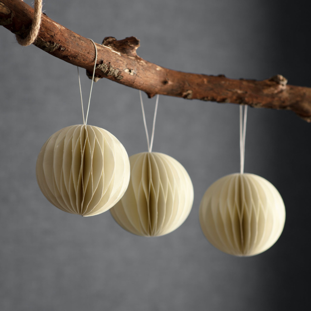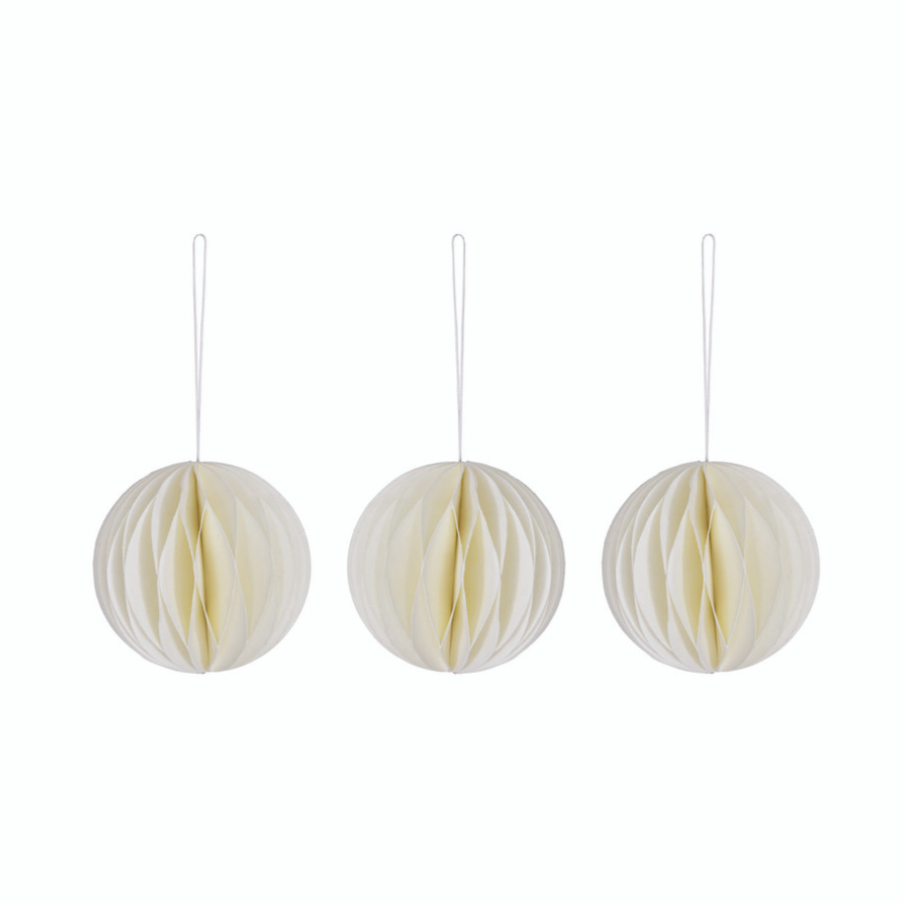 Crafted from cotton paper with a luxe velvet feel, these Maddox Bauble comes in a beautiful warm white which is perfect for any colour scheme you have this festive period. Each bauble comes flat and folds out to create the classic honeycomb shape.
