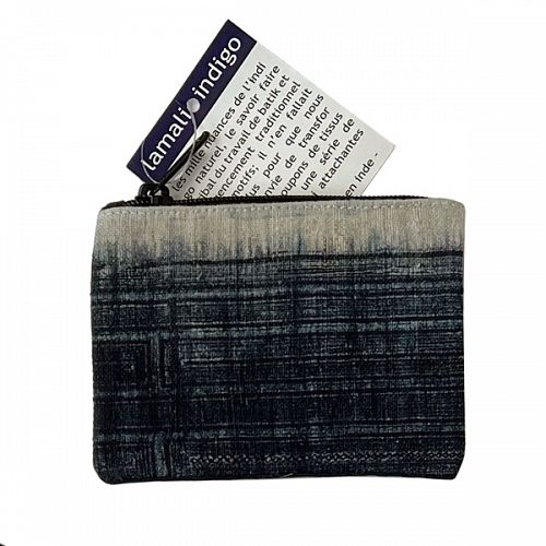 Indigo Small Purse - 9.5 x 13cm approx. - Fabric front, plain back. Handmade in India.