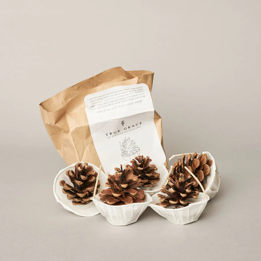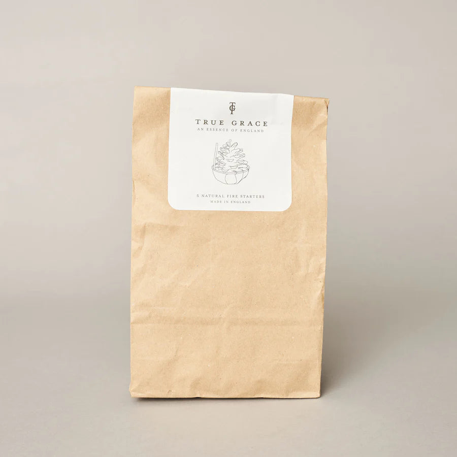 Crafted using recycled wax from our traditional candle making process, our Natural Fire Starters are a key ingredient to a cosy winter's night or summer evening entertaining. Made from pine cones, our natural, clean burning wax and a pure cotton wick these fire starters not only look lovely, but when nestled under kindling in a woodburner or fire pit and lit one fire starter will feed your fuel with sufficient flame to start a roaring fire. Packaged in a recyclable paper bag, each pack contains five fire starters.