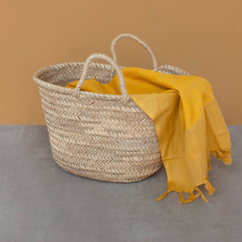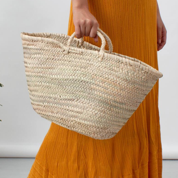 A simple French-style Market Basket, ethically made from natural fibres. Great for shopping or fill with textiles at home. Available in two sizes.