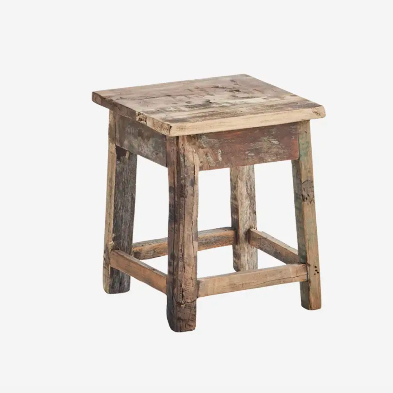 This small rustic stool has been handcrafted from recycled wood. You may find previous makers marks, knots and imperfections but we think this provides character and charm.