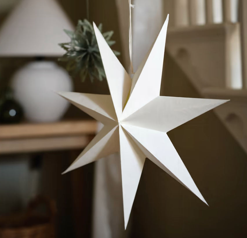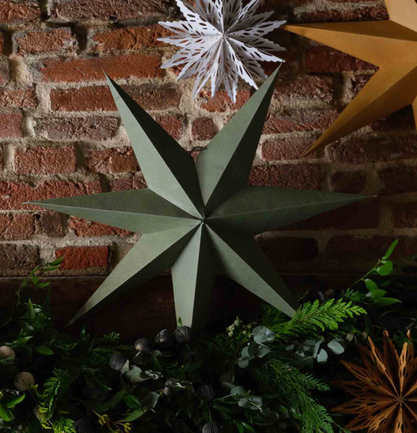 Crafted from cotton paper*, this decorative star is perfect for installing on windows, stairways or strung above the dinner table for a striking display. Each one is foldable which makes them super easy to move and store.