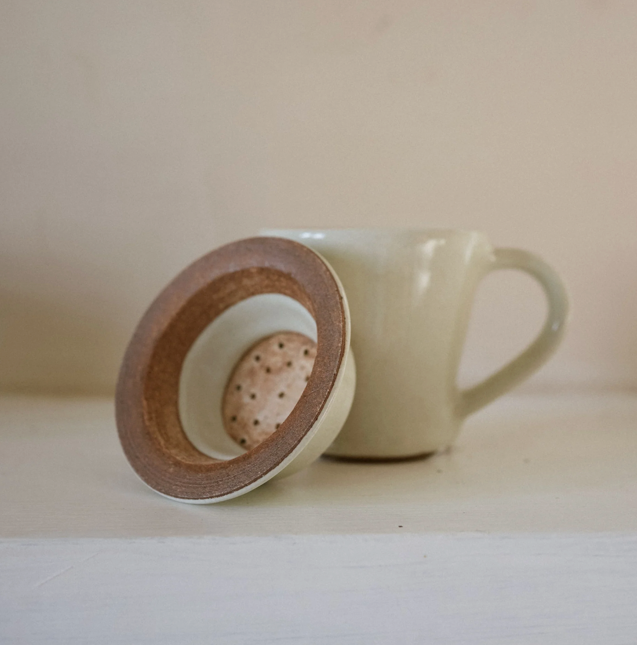 These sweet little cups are super easy to use, simply put your loose leaf tea into the strainer section. Add hot water up to the line in the strainer and let brew according to the tea instructions. When done, lift the strainer out and rest it on the upturned lid so it doesn't drip onto the work surface and then enjoy your lovely cuppa! Perfect for taking into the garden to enjoy while pottering around - the lid ensures your drink will stay warm for longer and stop any thing from falling in.