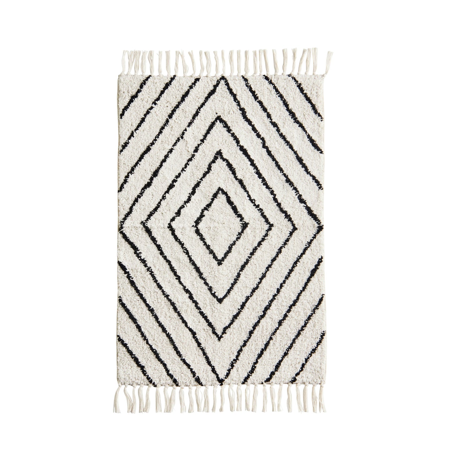 A stylish tufted cotton rug that’s bath mat in size, crafted in an off white and black colourway. Each one is handmade and measures 60x90cm.